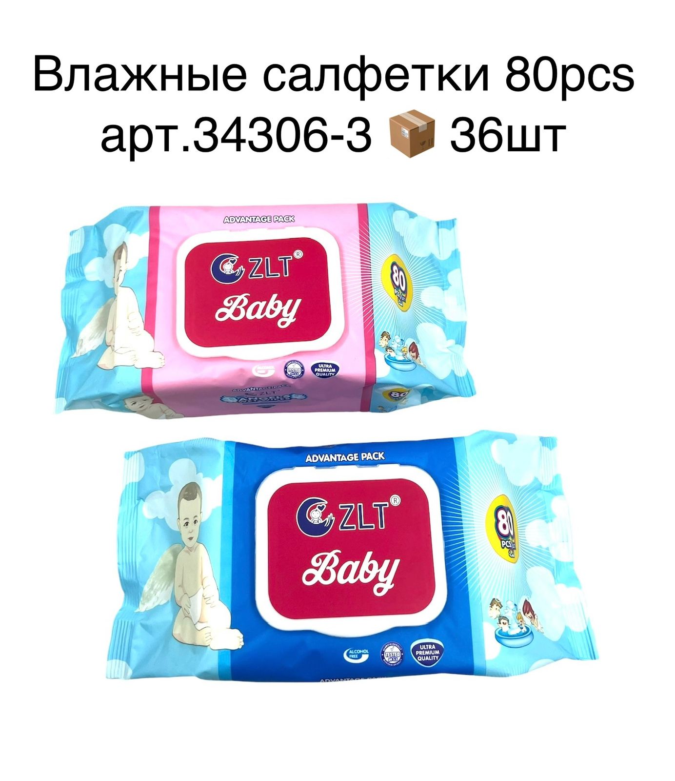 салфетки влажные, в упак. 80 салфеток, коробка 36 пачек
