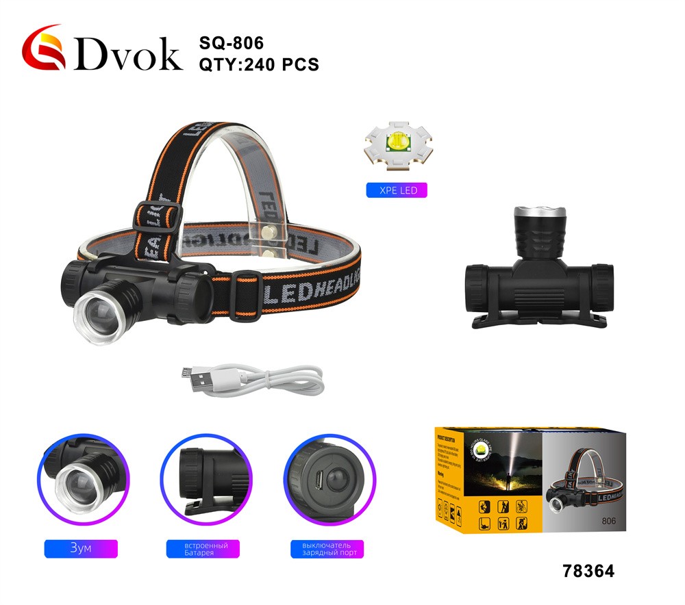 SQ-806 фонарик налобный